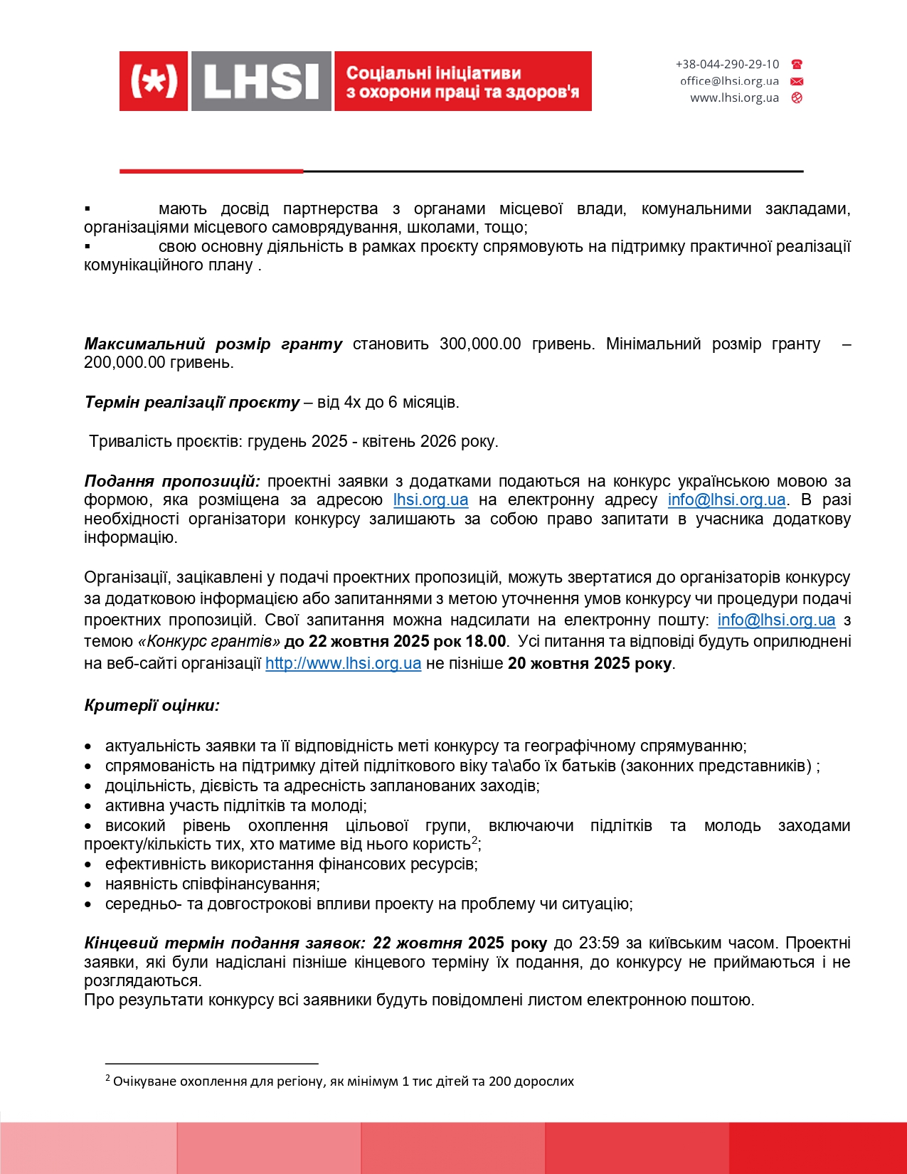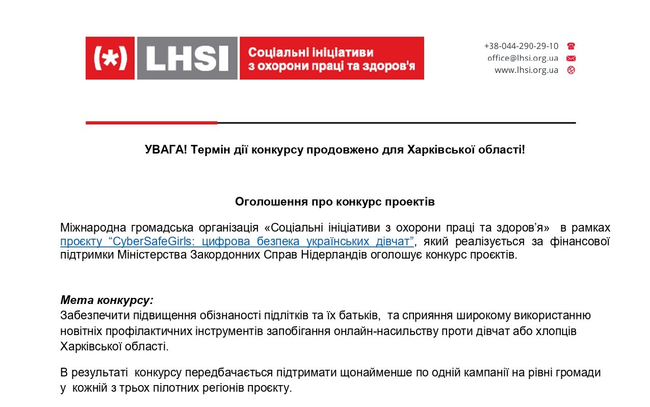 Додаткова інформація та питання: info@lhsi.org.ua (тема: «Конкурс грантів»).